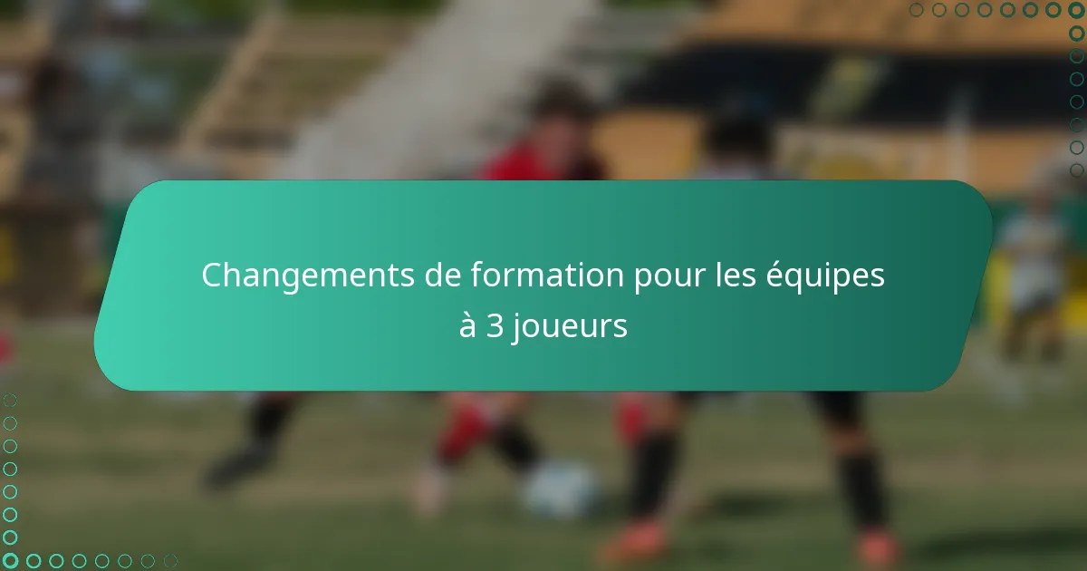 Dans le football à 3 contre 3, des formations efficaces comme 1-1-1 et 2-1 peuvent grandement influencer la performance d’une équipe en améliorant à la fois les stratégies offensives et défensives. Choisir la formation appropriée est crucial, car elle doit correspondre aux forces de l’équipe et aux compétences des joueurs pour maximiser l’efficacité du jeu. La mise en œuvre de ces changements nécessite une communication claire et de la pratique pour assurer des transitions fluides et une adaptabilité pendant les matchs.