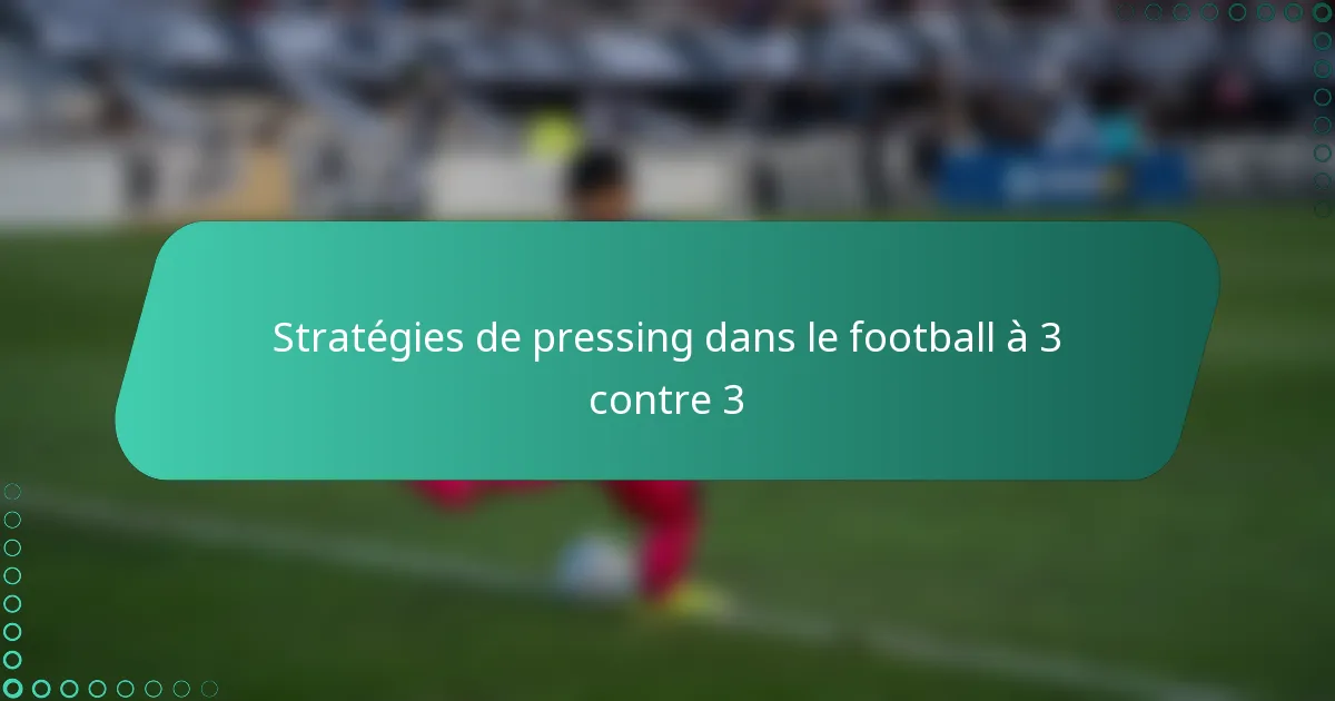 Quelles stratégies de pressing sont efficaces dans le football à 3 ?